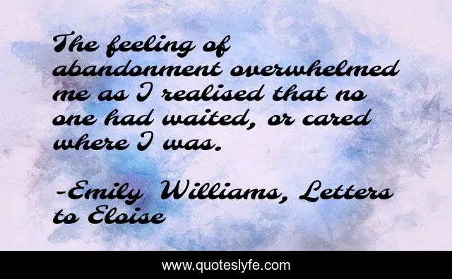 "Emily Williams, Letters to Eloise Quotes." Quoteslyfe.com, 2025. Sat. 06 Dec. 2025. <https://www.quoteslyfe.com/quote/The-feeling-of-abandonment-overwhelmed-me-as-122567>.