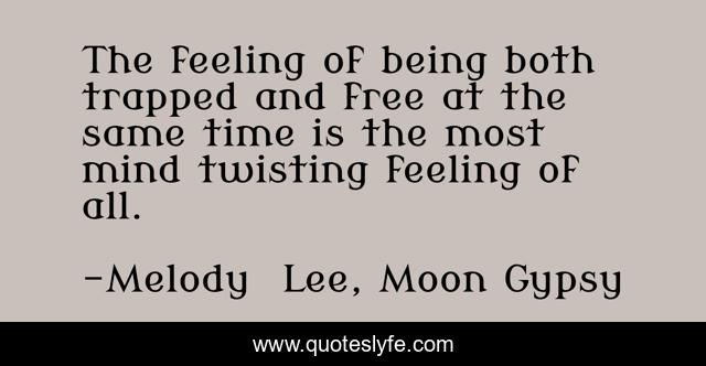 This page presents the quote "The feeling of being both trapped and free at the same time is the most mind twisting feeling of all.". Author of this quote is Melody Lee, Moon Gypsy. This quote is about freedom, life, poetry, free, trap,.