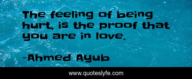 This page presents the quote "The feeling of being hurt, is the proof that you are in love.". Author of this quote is Ahmed Ayub. This quote is about likeness, like, hurts, hurt, love-hurts, love, affection,.