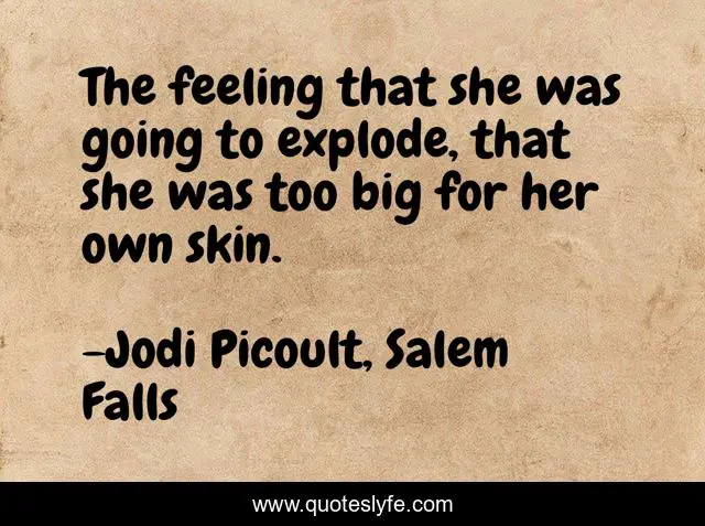 This page presents the quote "The feeling that she was going to explode, that she was too big for her own skin.". Author of this quote is Jodi Picoult, Salem Falls. .