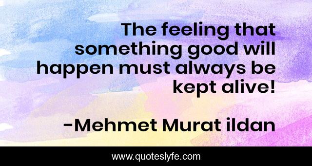 This page presents the quote "The feeling that something good will happen must always be kept alive!". Author of this quote is Mehmet Murat ildan. This quote is about good-will-happen, feeling, keep-alive, murat-ildan,.