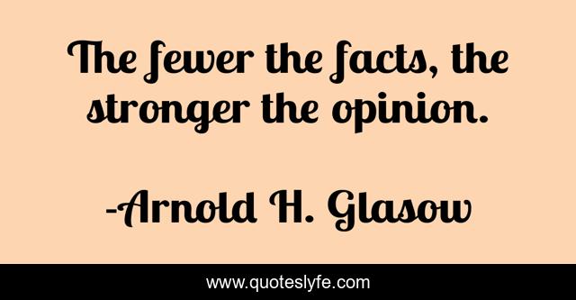 This page presents the quote "The fewer the facts, the stronger the opinion.". Author of this quote is Arnold H. Glasow. This quote is about facts, opinions, rational, wisdom,.
