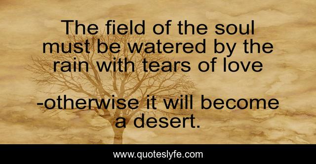 This page presents the quote "The field of the soul must be watered by the rain with tears of love". Author of this quote is otherwise it will become a desert.. This quote is about wisdom collection: the book of wisdom, sorin cerin,.