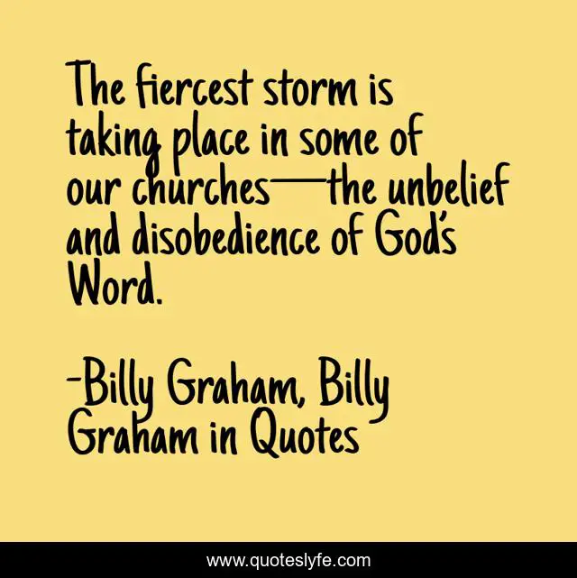 This page presents the quote "The fiercest storm is taking place in some of our churches—the unbelief and disobedience of God’s Word.". Author of this quote is Billy Graham, Billy Graham in Quotes. This quote is about billy-graham, church,.