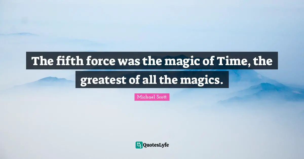 This page presents the quote "The fifth force was the magic of Time, the greatest of all the magics.". Author of this quote is Michael Scott. This quote is about magic, time, force, fifth,.
