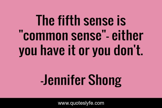 "Jennifer Shong Quotes." Quoteslyfe.com, 2025. Fri. 05 Dec. 2025. <https://www.quoteslyfe.com/quote/The-fifth-sense-is-common-sense-either-217401>.