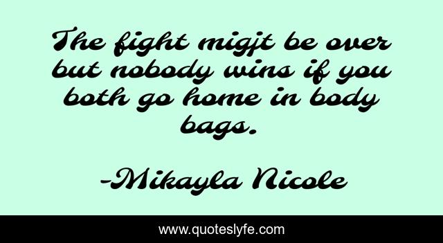 This page presents the quote "The fight migjt be over but nobody wins if you both go home in body bags.". Author of this quote is Mikayla Nicole. This quote is about life, fighting,.