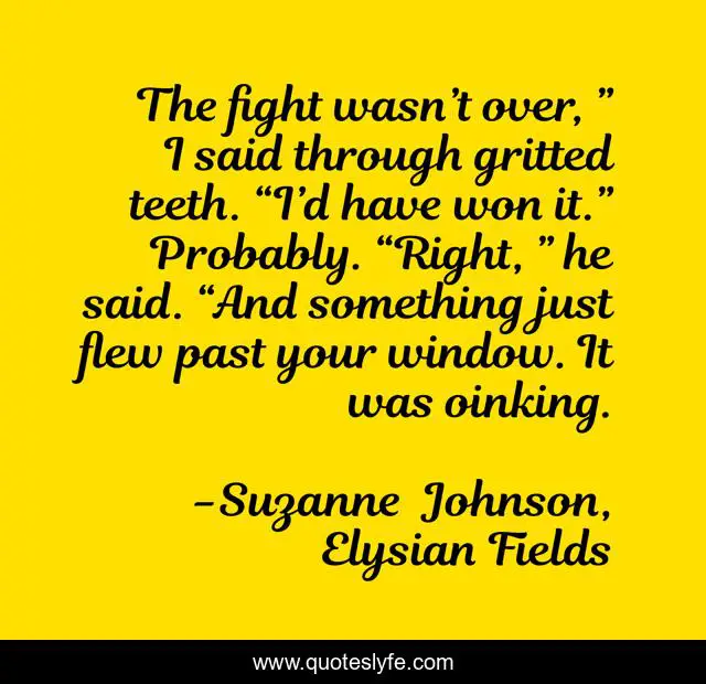 "Suzanne Johnson, Elysian Fields Quotes." Quoteslyfe.com, 2025. Fri. 05 Dec. 2025. <https://www.quoteslyfe.com/quote/The-fight-wasn-t-over-I-said-133875>.