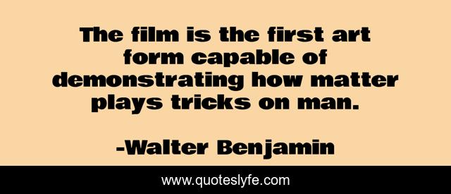 This page presents the quote "The film is the first art form capable of demonstrating how matter plays tricks on man.". Author of this quote is Walter Benjamin. This quote is about art, deception, film,.