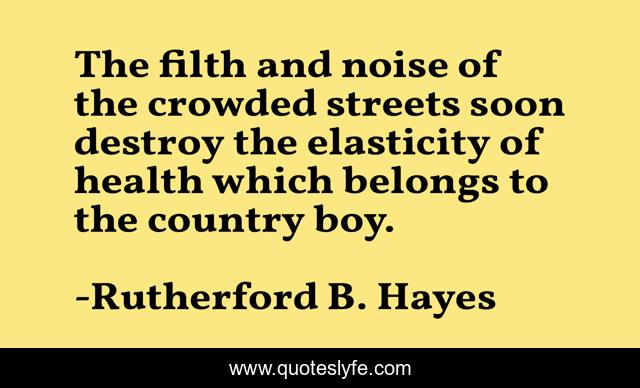 This page presents the quote "The filth and noise of the crowded streets soon destroy the elasticity of health which belongs to the country boy.". Author of this quote is Rutherford B. Hayes. This quote is about country, streets, boy,.