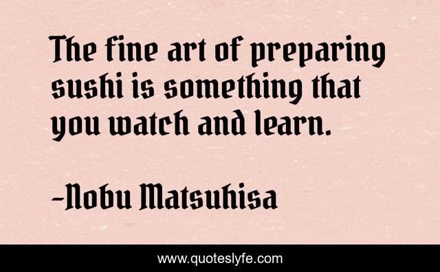This page presents the quote "The fine art of preparing sushi is something that you watch and learn.". Author of this quote is Nobu Matsuhisa. This quote is about sushi, learn,.