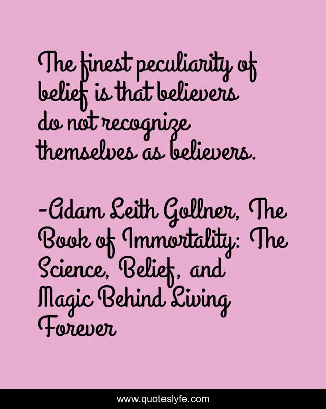 "Adam Leith Gollner, The Book of Immortality: The Science, Belief, and Magic Behind Living Forever Quotes." Quoteslyfe.com, 2025. Sat. 06 Dec. 2025. <https://www.quoteslyfe.com/quote/The-finest-peculiarity-of-belief-is-that-111561>.