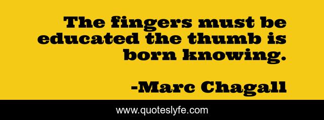 This page presents the quote "The fingers must be educated the thumb is born knowing.". Author of this quote is Marc Chagall. This quote is about art, artist,.
