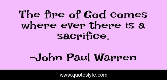 This page presents the quote "The fire of God comes where ever there is a sacrifice.". Author of this quote is John Paul Warren. This quote is about the-church-of-south-florida, grace, john-paul-warren, pastor-john-paul-warren,.