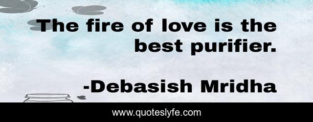 This page presents the quote "The fire of love is the best purifier.". Author of this quote is Debasish Mridha. This quote is about philosophy, love, inspirational, fire-of-love, debasish-mridha, quotes, effect-of-love, enthusiasm, debasish-mridha-m-d,.