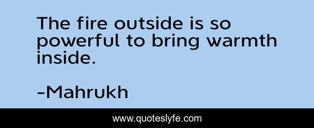 This page presents the quote "The fire outside is so powerful to bring warmth inside.". Author of this quote is Mahrukh. .