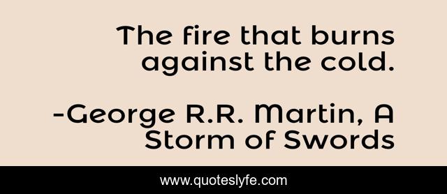 "George R.R. Martin, A Storm of Swords Quotes." Quoteslyfe.com, 2025. Tue. 09 Dec. 2025. <https://www.quoteslyfe.com/quote/The-fire-that-burns-against-the-cold-222018>.