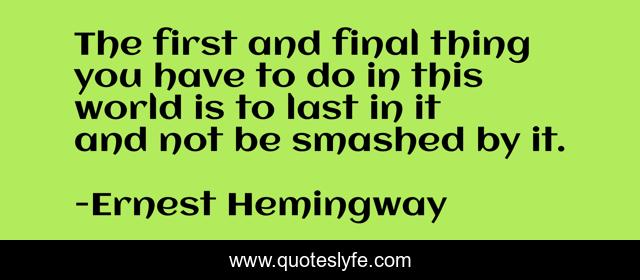 "Ernest Hemingway Quotes." Quoteslyfe.com, 2025. Fri. 05 Dec. 2025. <https://www.quoteslyfe.com/quote/The-first-and-final-thing-you-have-271578>.