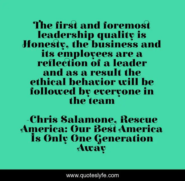 "Chris Salamone, Rescue America: Our Best America Is Only One Generation Away Quotes." Quoteslyfe.com, 2025. Fri. 05 Dec. 2025. <https://www.quoteslyfe.com/quote/The-first-and-foremost-leadership-quality-is-187833>.