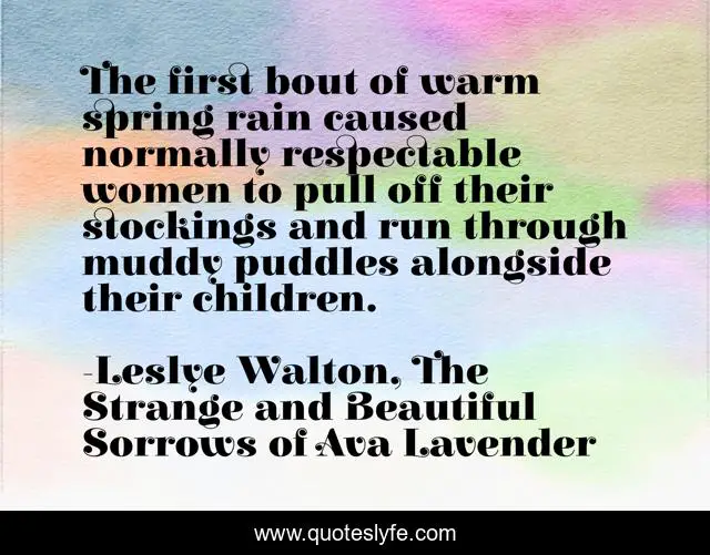"Leslye Walton, The Strange and Beautiful Sorrows of Ava Lavender Quotes." Quoteslyfe.com, 2025. Sat. 06 Dec. 2025. <https://www.quoteslyfe.com/quote/The-first-bout-of-warm-spring-rain-234592>.