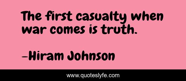 This page presents the quote "The first casualty when war comes is truth.". Author of this quote is Hiram Johnson. This quote is about war, truth,.