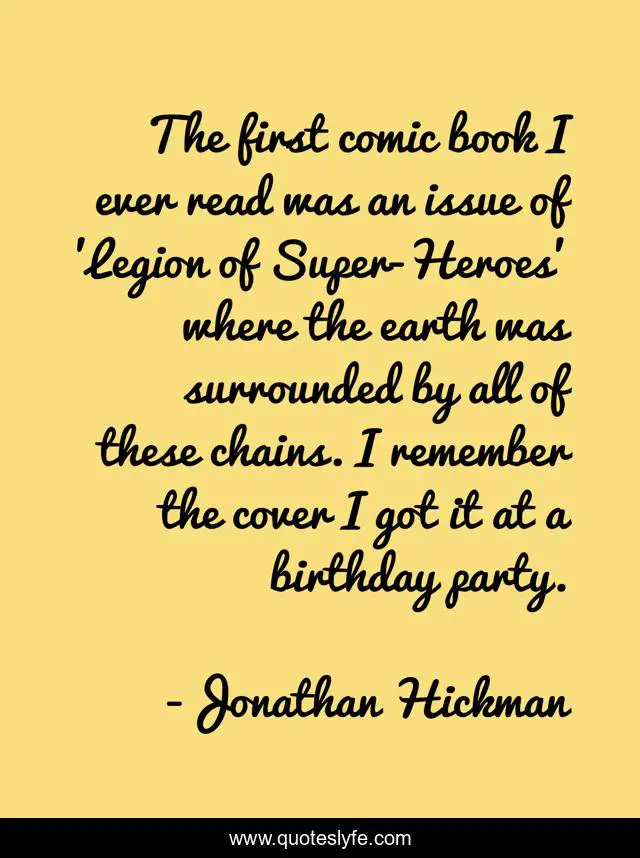 "Jonathan Hickman Quotes." Quoteslyfe.com, 2025. Fri. 05 Dec. 2025. <https://www.quoteslyfe.com/quote/The-first-comic-book-I-ever-read-312959>.