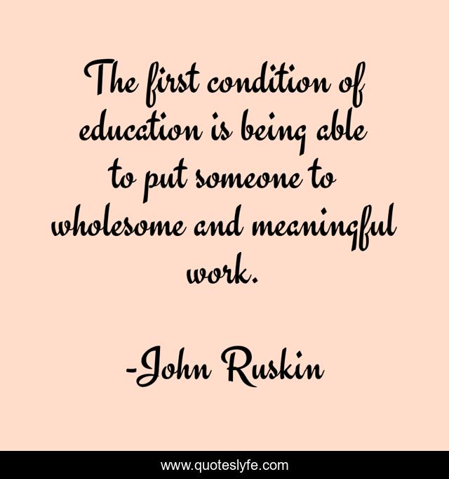 This page presents the quote "The first condition of education is being able to put someone to wholesome and meaningful work.". Author of this quote is John Ruskin. This quote is about work, meaningful, first,.