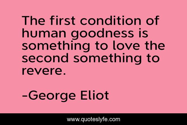 This page presents the quote "The first condition of human goodness is something to love the second something to revere.". Author of this quote is George Eliot. .