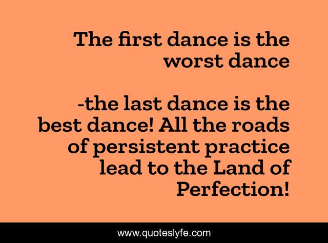 This page presents the quote "The first dance is the worst dance". Author of this quote is the last dance is the best dance! All the roads of persistent practice lead to the Land of Perfection!. .