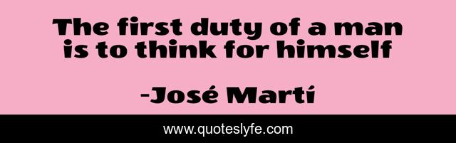 This page presents the quote "The first duty of a man is to think for himself". Author of this quote is José Martí. This quote is about communism, democracy, freedom, socialism, revolution, hope, politics, individualism, philosophy,.