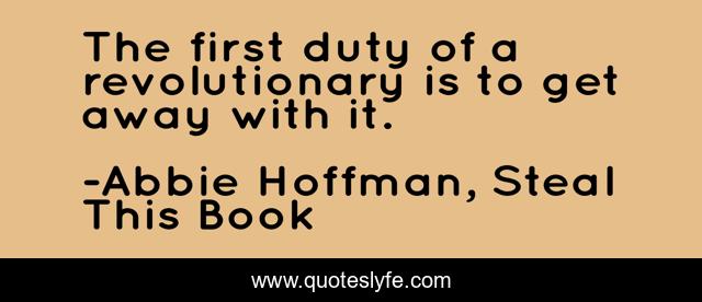 "Abbie Hoffman, Steal This Book Quotes." Quoteslyfe.com, 2025. Mon. 08 Dec. 2025. <https://www.quoteslyfe.com/quote/The-first-duty-of-a-revolutionary-is-206899>.