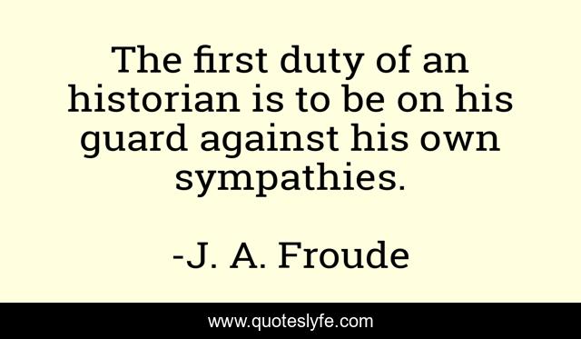 This page presents the quote "The first duty of an historian is to be on his guard against his own sympathies.". Author of this quote is J. A. Froude. This quote is about mistakes, blunders,.