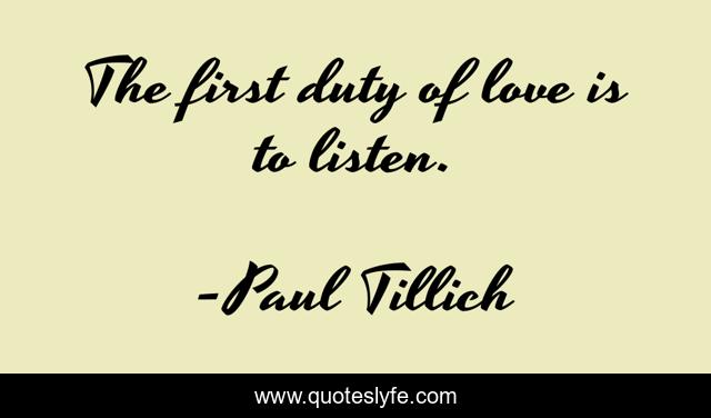 This page presents the quote "The first duty of love is to listen.". Author of this quote is Paul Tillich. .