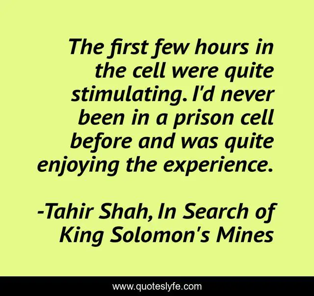 This page presents the quote "The first few hours in the cell were quite stimulating. I'd never been in a prison cell before and was quite enjoying the experience.". Author of this quote is Tahir Shah, In Search of King Solomon's Mines. .