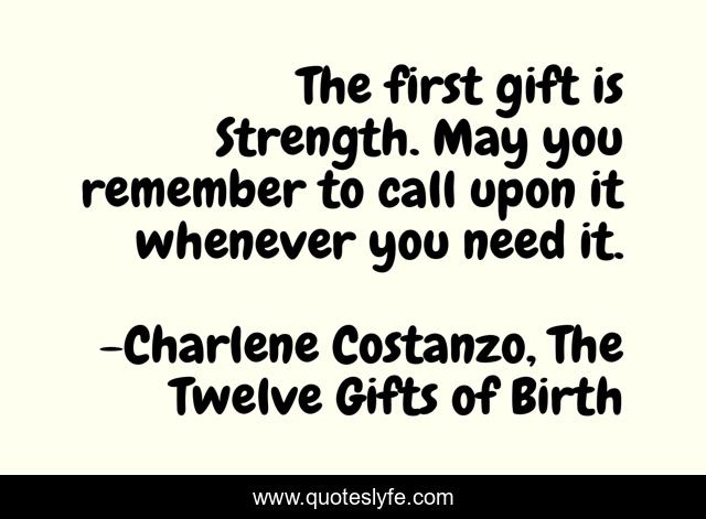 "Charlene Costanzo, The Twelve Gifts of Birth Quotes." Quoteslyfe.com, 2025. Sat. 06 Dec. 2025. <https://www.quoteslyfe.com/quote/The-first-gift-is-Strength-May-you-28518>.