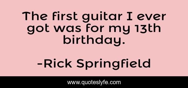 This page presents the quote "The first guitar I ever got was for my 13th birthday.". Author of this quote is Rick Springfield. This quote is about guitar, got, first,.