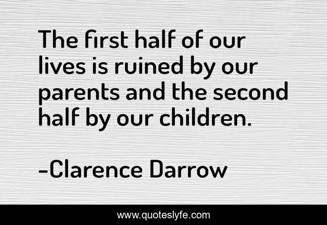 This page presents the quote "The first half of our lives is ruined by our parents and the second half by our children.". Author of this quote is Clarence Darrow. .