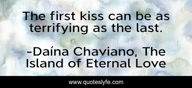 This page presents the quote "The first kiss can be as terrifying as the last.". Author of this quote is Daína Chaviano, The Island of Eternal Love. This quote is about death, love, first-love, lovers, kiss, affection,.