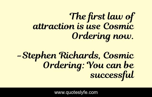 "Stephen Richards, Cosmic Ordering: You can be successful Quotes." Quoteslyfe.com, 2025. Sun. 07 Dec. 2025. <https://www.quoteslyfe.com/quote/The-first-law-of-attraction-is-use-17000>.