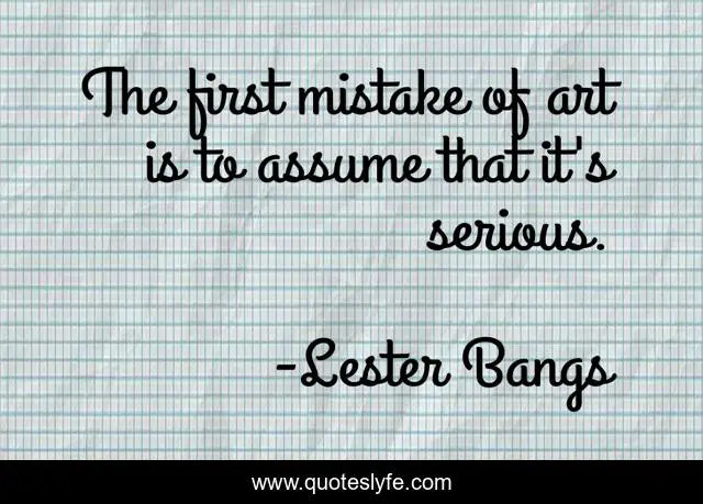 This page presents the quote "The first mistake of art is to assume that it's serious.". Author of this quote is Lester Bangs. This quote is about art, music,.