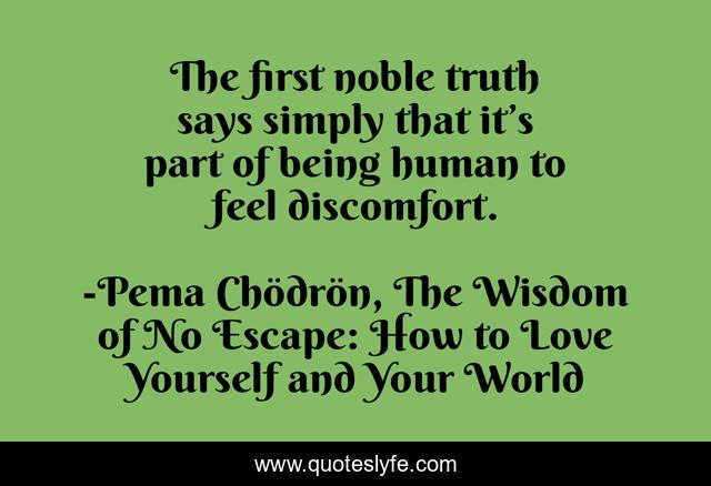 This page presents the quote "The first noble truth says simply that it’s part of being human to feel discomfort.". Author of this quote is Pema Chödrön, The Wisdom of No Escape: How to Love Yourself and Your World. This quote is about discomfort, human, truth,.