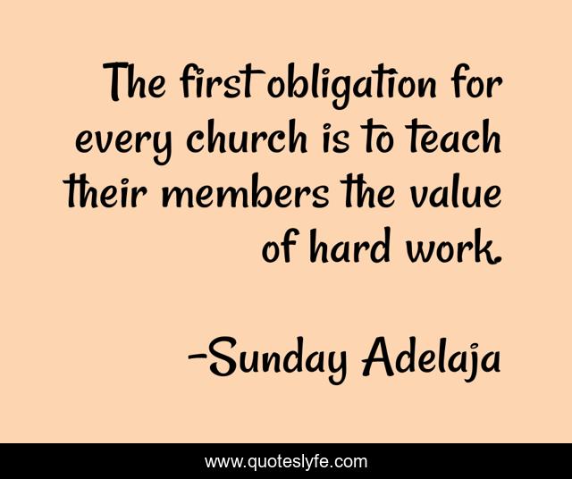This page presents the quote "The first obligation for every church is to teach their members the value of hard work.". Author of this quote is Sunday Adelaja. This quote is about hardwork, teachings, obligation, value, church,.
