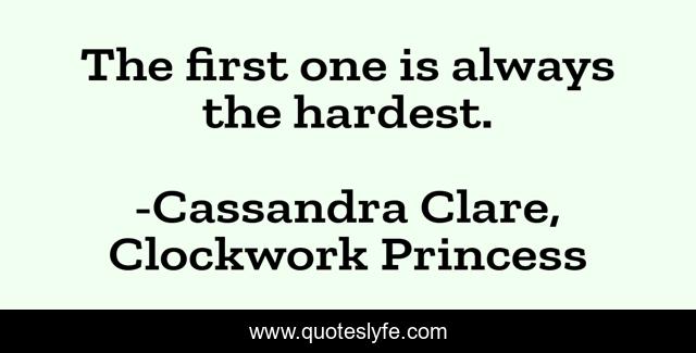 This page presents the quote "The first one is always the hardest.". Author of this quote is Cassandra Clare, Clockwork Princess. This quote is about magnus-bane, tessa-gray, sad, heartbreaking, will-herondale, heartwrenching,.
