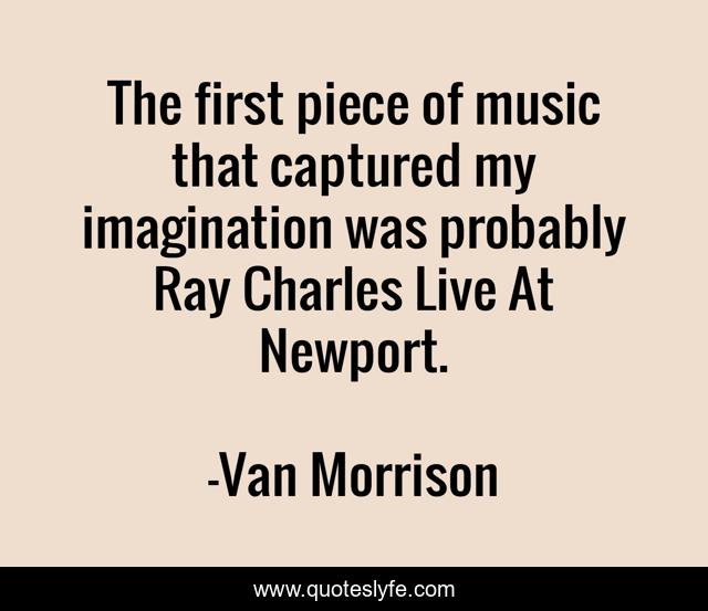 This page presents the quote "The first piece of music that captured my imagination was probably Ray Charles Live At Newport.". Author of this quote is Van Morrison. This quote is about live, music, first,.
