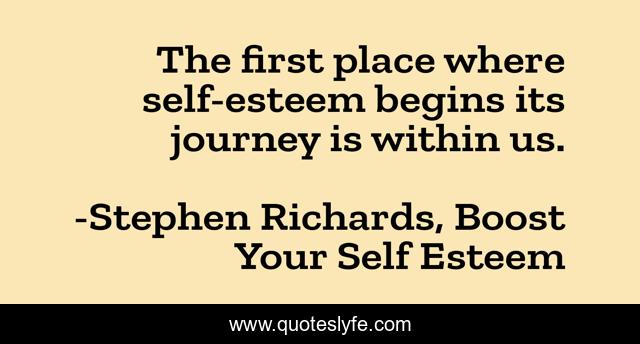 This page presents the quote "The first place where self-esteem begins its journey is within us.". Author of this quote is Stephen Richards, Boost Your Self Esteem. This quote is about wealth-creation, money, mind-body-spirit, optimistic, self-help, confidence, wealth, self-help-book, positive,.