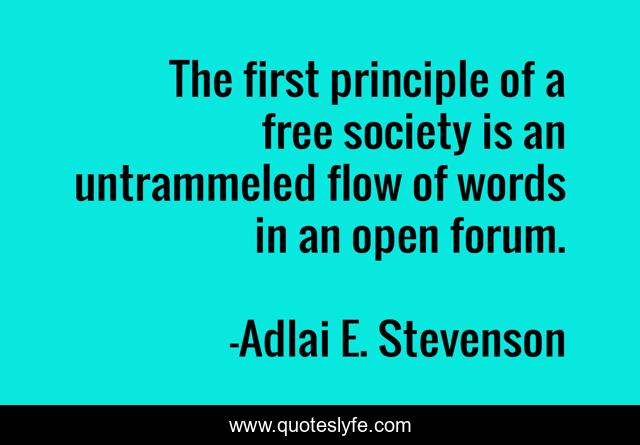 This page presents the quote "The first principle of a free society is an untrammeled flow of words in an open forum.". Author of this quote is Adlai E. Stevenson. This quote is about flow, words, free,.