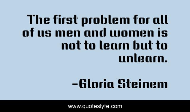 This page presents the quote "The first problem for all of us men and women is not to learn but to unlearn.". Author of this quote is Gloria Steinem. .