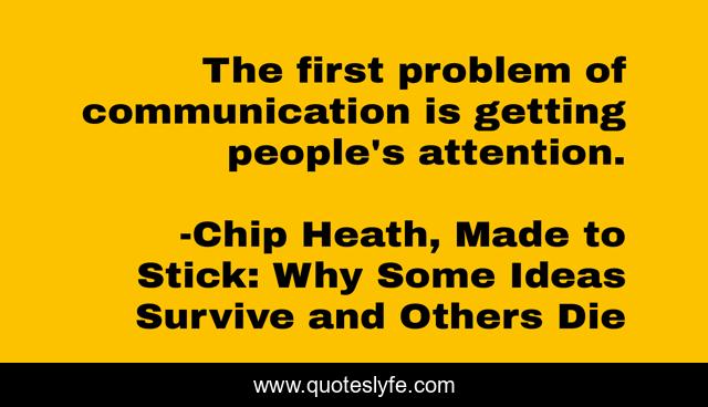 This page presents the quote "The first problem of communication is getting people's attention.". Author of this quote is Chip Heath, Made to Stick: Why Some Ideas Survive and Others Die. This quote is about communication, attention,.