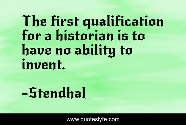 This page presents the quote "The first qualification for a historian is to have no ability to invent.". Author of this quote is Stendhal. .