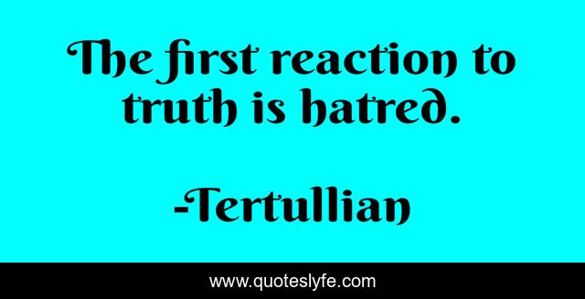 This page presents the quote "The first reaction to truth is hatred.". Author of this quote is Tertullian. This quote is about hatred, truth is, first,.